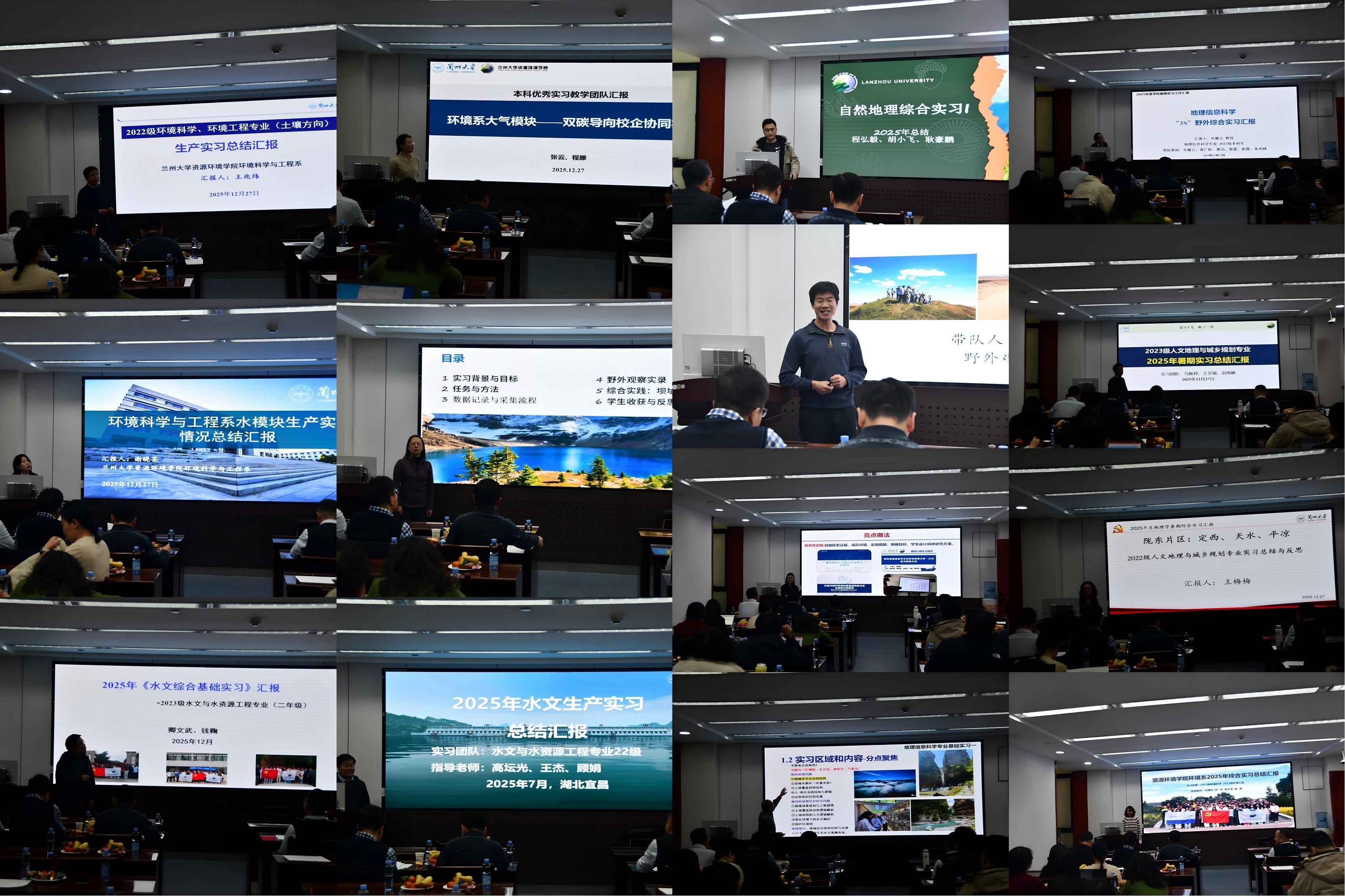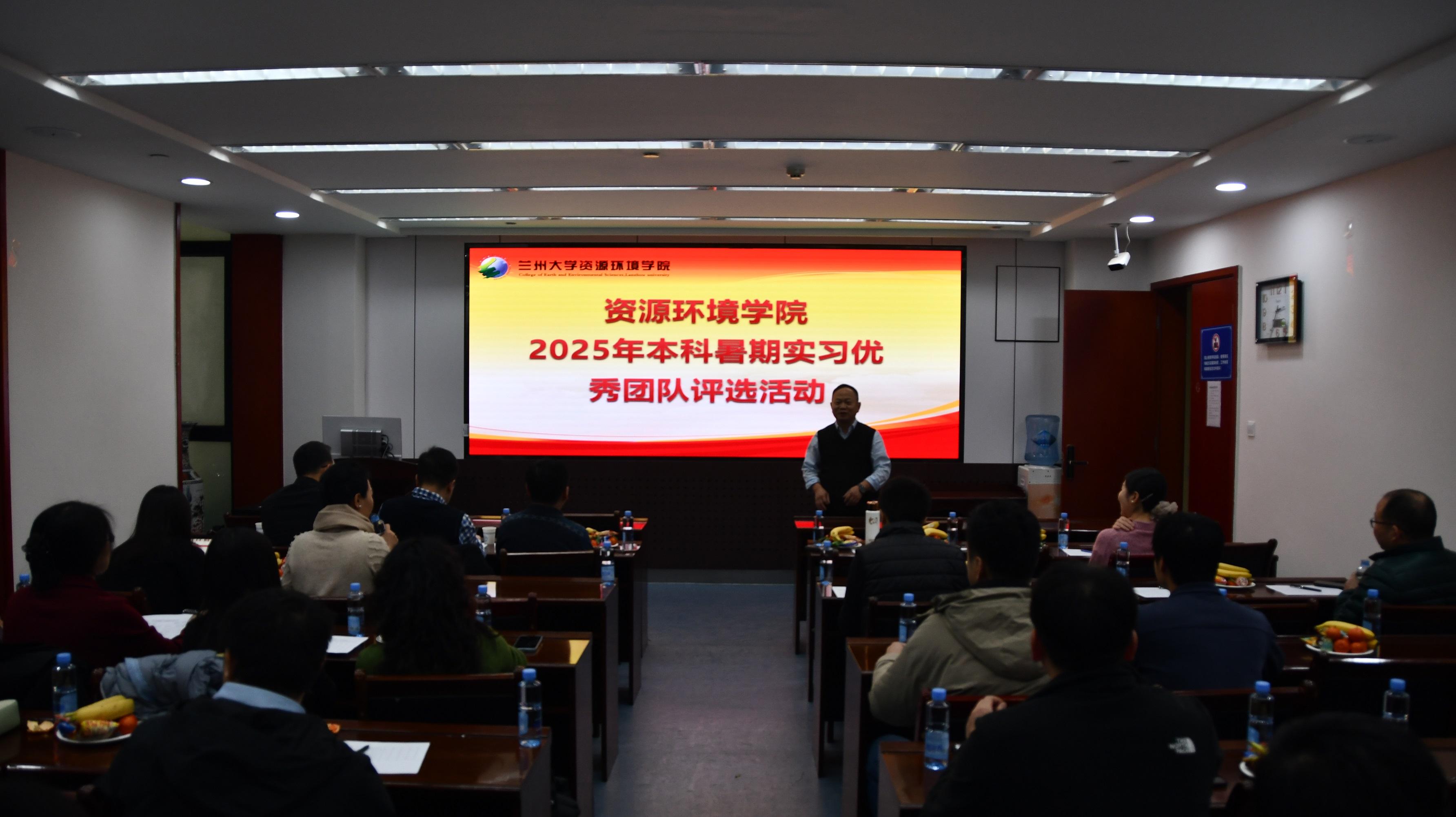 2025年12月27日,资源环境学院2025年度专业实习交流会暨第三届本科“优秀实习教学团队”评选活动在观云楼1615会议室顺利举行。此次活动既是对学院过去一年实习教学成果的集中检阅,也是对优秀实习教学团队的表彰与激励,更为各团队搭建了经验交流的平台,充分彰显了学院对实践教学的高度重视。活动邀请数学与统计学院教学副院长马闪教授、物理科学与技术学院教学副院长王建波教授、生态学院教学副院长尚占环教授、甘肃省地矿局测绘勘查院潘攀院长及资源环境学院教学副院长管清玉教授担任评委,2025年度学院全体实习带队教师全程参与。